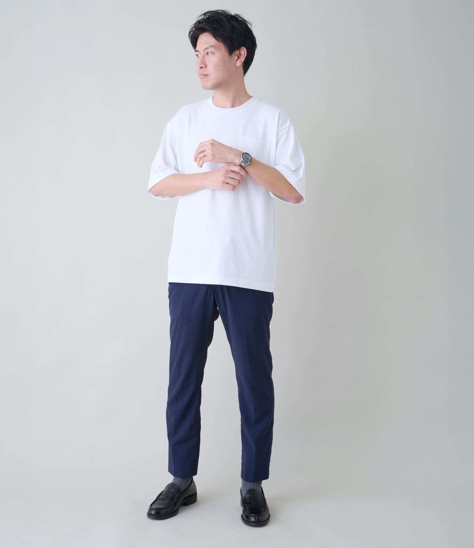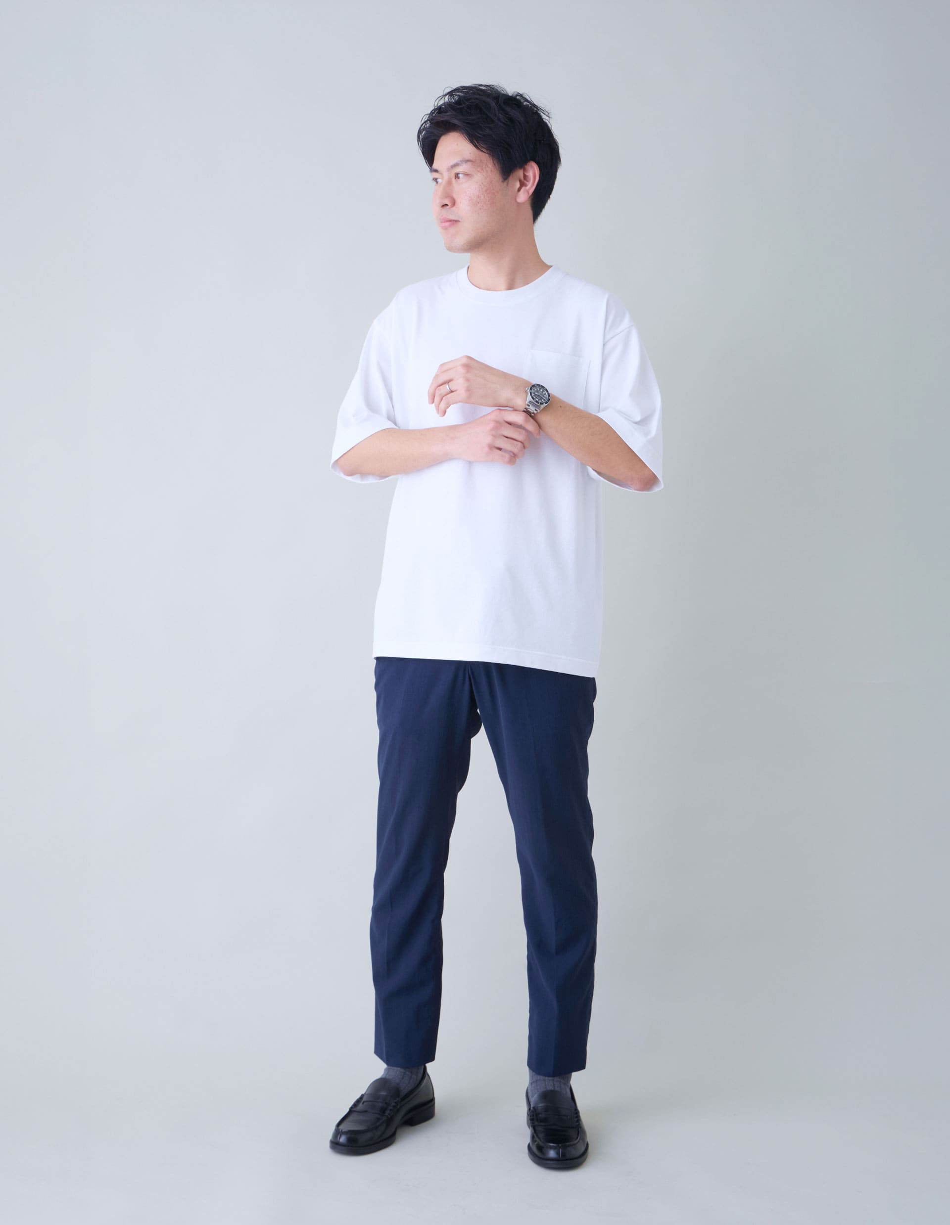 オフィスカジュアルが進み、TシャツがOKになった会社は多いはず。カジュアルな着こなしでもバランスの取れたスタイリングが可能です。